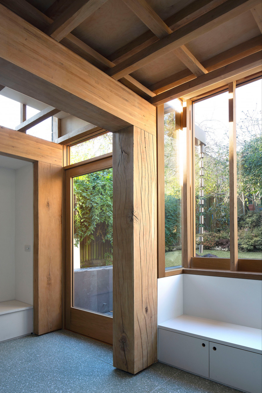 While Victorian houses traditionally relied on masonry and timber, modern extensions often introduce steel and concrete, driving up embodied carbon. This project reimagines terrace house extensions with a sustainable twist, using timber and eliminating concrete. Foundations are built with reusable screw piles, and a rainwater harvesting pond also serves as a retaining wall. The design showcases exposed timber and demountable connections, promoting flexibility and minimizing waste. Embodied carbon is slashed to just a quarter of standard extensions, and thanks to timber's carbon sequestration, emissions drop even further to 145 kgCO2e/m².