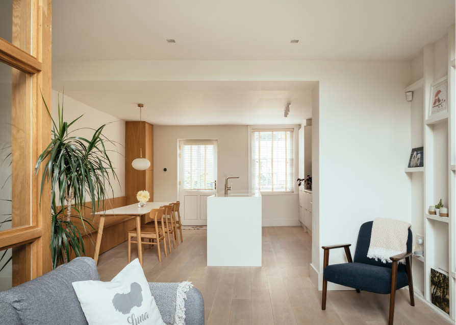 A sensitive, respectful, contemporary refurbishment of an historical house that appears two storeys high at the front elevation but extraordinarily stretches to five storeys to the rear. Nimtim’s proposal sought to emphasise the contrast in characteristics of the front-facing and rear-facing spaces: more intimate, cosier spaces at the front, and taller, lighter, brighter spaces at the rear. The organisation of the new spaces was based around improving the legibility of the house. The new double-height void in the living space to the rear emphasises the verticality of the house and acts as an anchor to the existing circulation.